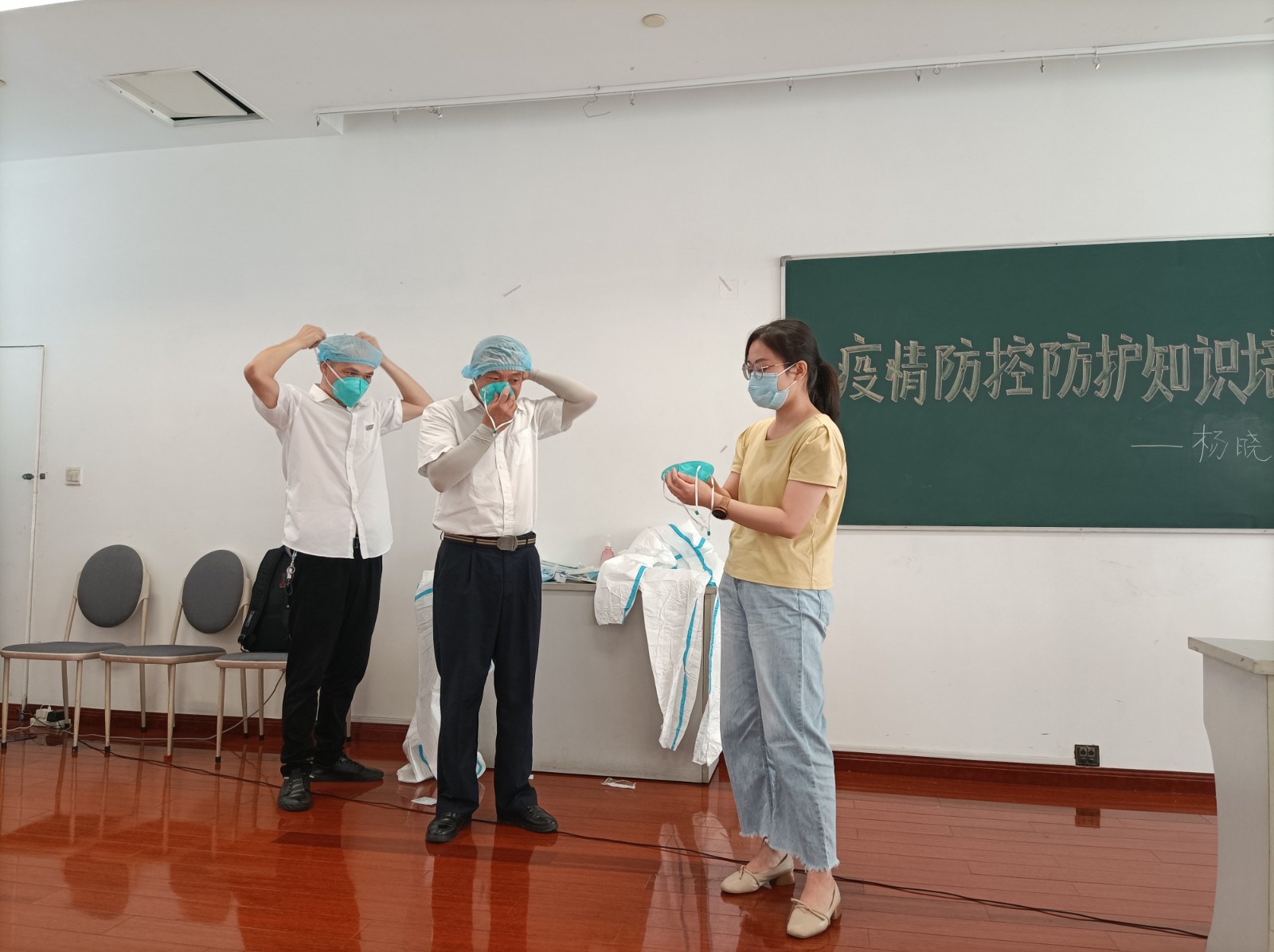 培訓(xùn)中,楊曉對如何正確有效的自身洗消進(jìn)行了專業(yè)示范,對防護(hù)服的穿、脫流程和注意事項進(jìn)行了詳細(xì)分步解說。為確保駕駛員能迅速掌握防疫知識和技能并有效運(yùn)用到平時的工作中去,楊科長邀請兩名駕駛員上臺現(xiàn)場演練防護(hù)服的穿、脫步驟,同時邊指導(dǎo)邊著重指出需要注意的地方,讓大家印象更加深刻。