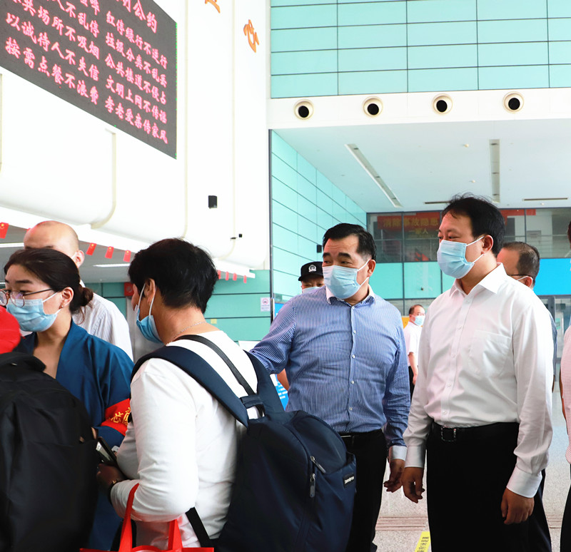 10月1日上午,市交通運(yùn)輸局黨委書記、局長(zhǎng)薛曄帶隊(duì)來到常州汽車站檢查國慶安全生產(chǎn)和疫情防控工作,常運(yùn)集團(tuán)董事長(zhǎng)兼總經(jīng)理謝星,副總經(jīng)理費(fèi)軒龍、朱平春陪同檢查。薛曄一行檢查了車站旅客到達(dá)區(qū)、進(jìn)站口的防疫政策執(zhí)行情況,查看了實(shí)名制進(jìn)站乘車和進(jìn)站安檢,詳細(xì)了解了國慶期間的旅客組織情況,對(duì)假期堅(jiān)守一線的站務(wù)員、駕駛員進(jìn)行慰問,強(qiáng)調(diào)公司要認(rèn)真落實(shí)安全生產(chǎn)和疫情防控的要求,叮囑職工們既要服務(wù)好旅客、確保旅客平安出行,也要做好疫情個(gè)人防護(hù)。